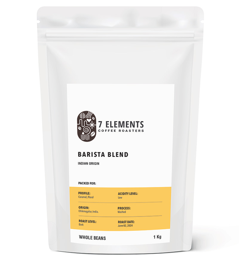 Barista Blend – Medium Dark INDIAN ORIGIN ₹ 125 – 750 See prices as per quantities below Whole Beans and Ground Coffee Roast Level: Medium Dark Ingredients: Arabica and Robusta Profile: Dark Chocolate, Floral Acidity Level: Medium Process: Washed Origin: Chikmagalur Brewing Details Enjoyed Black and with Milk Available Quantity 100g – ₹125 500g – ₹450 250g – ₹250 1 kg – ₹750