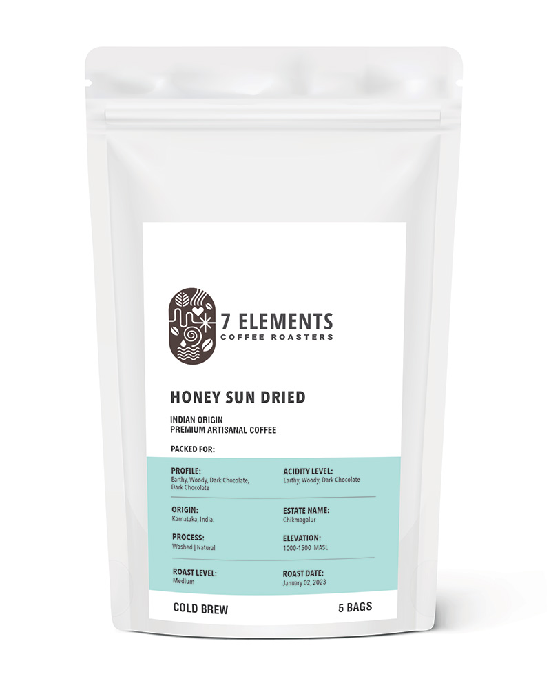 Honey Sun Dried INDIAN ORIGIN PREMIUM ARTISANAL COFFEE ₹ 340 225 g (5 Bags x 45 g) Each Bag makes 450 ml coffee Roast Level: Medium Ingredients: 100% Arabica Profile: Fruity, Caramel, Fig Acidity Level: Low-Medium Process: (Honey) Sun Dried Origin : Karnataka, Sakleshpur Brewing Details Enjoyed Black and with Milk Available Quantity