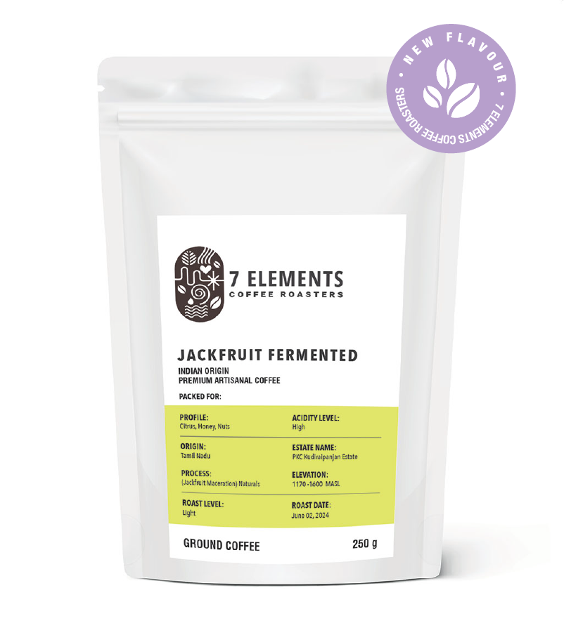 Jackfruit Fermented INDIAN ORIGIN PREMIUM ARTISANAL COFFEE ₹ 350 – 810 M.R.P ₹ 440 – 1015 See pricing details below (Inclusive of all Taxes) Whole Beans and Ground Coffee Roast Level: Light Ingredients: 100% Arabica Profile: Citrus, Honey, Nuts Acidity Level: High Process: (Jackfruit Maceration) Naturals Origin: Tamil Nadu Brewing Details Enjoyed without Milk – Only Black Coffee Available Quantity 100g – ₹350 250g – ₹810 Know Your Coffee Grind Size Different grind sizes are used for various brew
