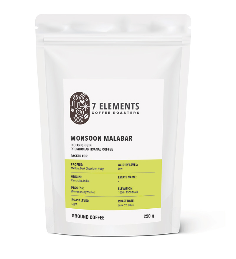 Monsoon Malabar INDIAN ORIGIN PREMIUM ARTISANAL COFFEE ₹ 230 – 530 M.R.P ₹ 290 – 665 See pricing details below (Inclusive of all Taxes) Whole Beans and Ground Coffee Roast Level: Light roast Ingredients: 100% Arabica Profile: Mellow, Dark Chocolate, Nutty Acidity Level: Low Acidity Process: (Monsooned) Washed Origin : Chikamagalur, Coorg and other coffee regions of India Brewing Details Enjoyed without milk – Only Black Coffee. Available Quantity 100g – ₹230 250g – ₹530